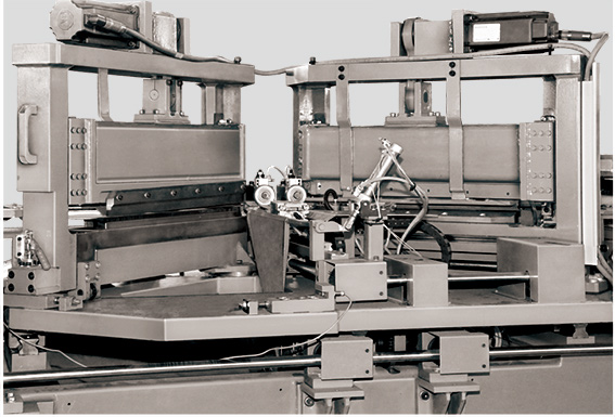剪床用來(lái)剪切鐵心片型所要求的斜角,剪床由伺服電機(jī)、導(dǎo)軌、動(dòng)梁、合金刀具等組成。+45o、-45o各一臺(tái)(其中可旋轉(zhuǎn)為90°直剪)可以剪切 45°、90°、135°斜角。片料剪斷后由排輥裝置傳送至出料臺(tái)。